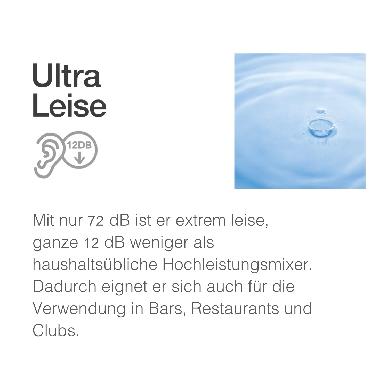 Auch die bewährte 1.200 Watt Leistung und der 4,27 PS starke und angenehm leise bürstenlose DC Motor ist und bleibt er ein kraftvoller Partner für die anspruchsvolle Küche und für die Gastronomie.