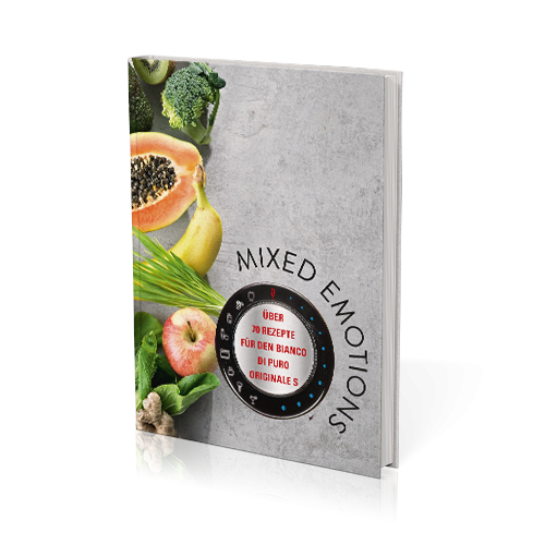 Das umfangreiche Rezeptbuch Mixed Emotions mit vielen leckeren Ideen ist im Lieferumfang des PURO S und des Personalblender-Aufsatzes TRI-SET enthalten.